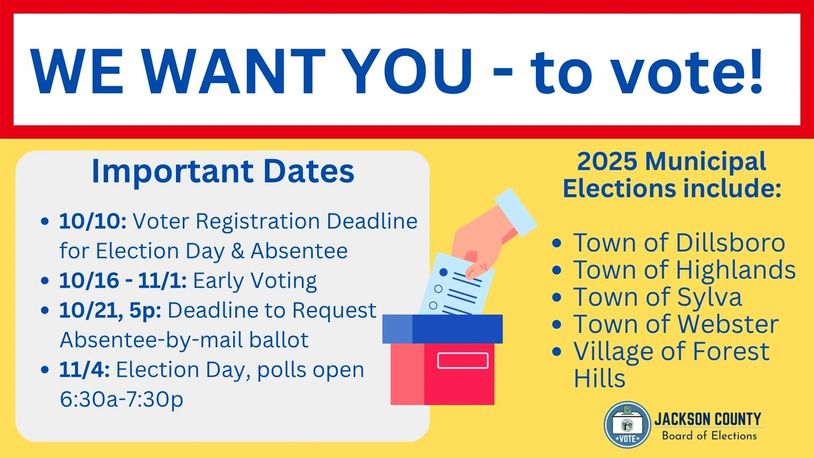 Mailing: 401 Grindstaff Cove Road, Sylva, NC 28779 (828) 586-7538 // ElectionsInfo@JacksonNC.org